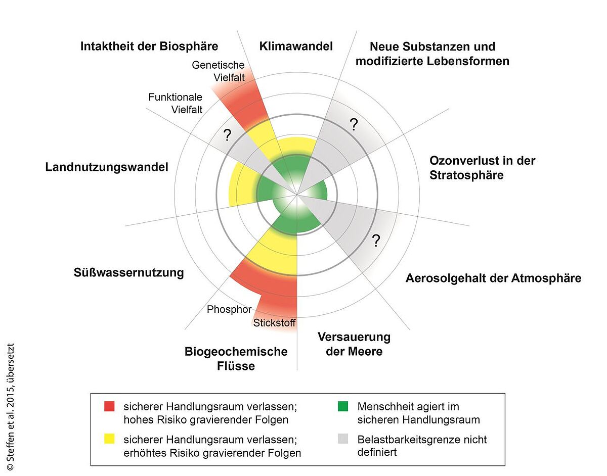 Abb. 9 Die planetaren Belastbarkeitsgrenzen, Steffen et al. 2015, übersetzt